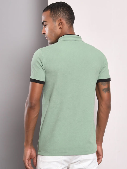 TANDUL Men Printed Stylised Neck Green T-Shirt