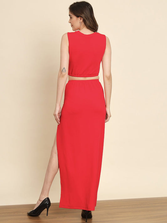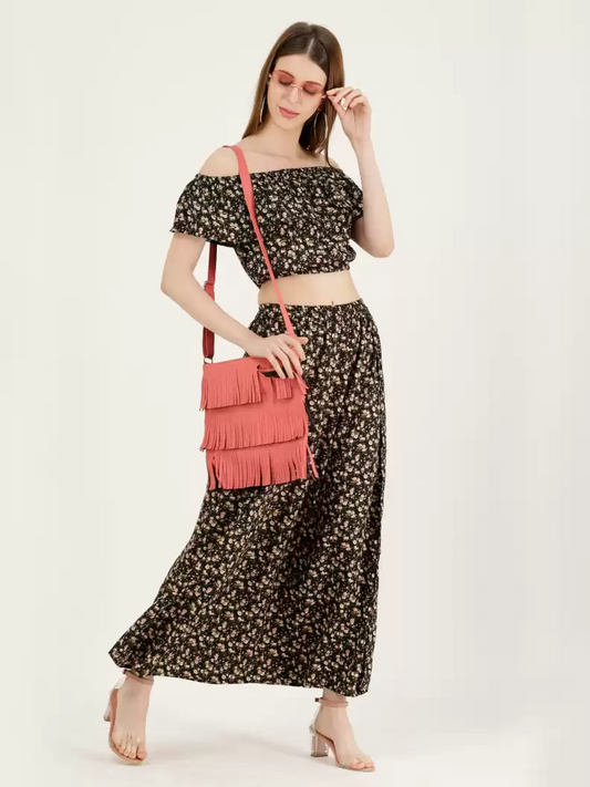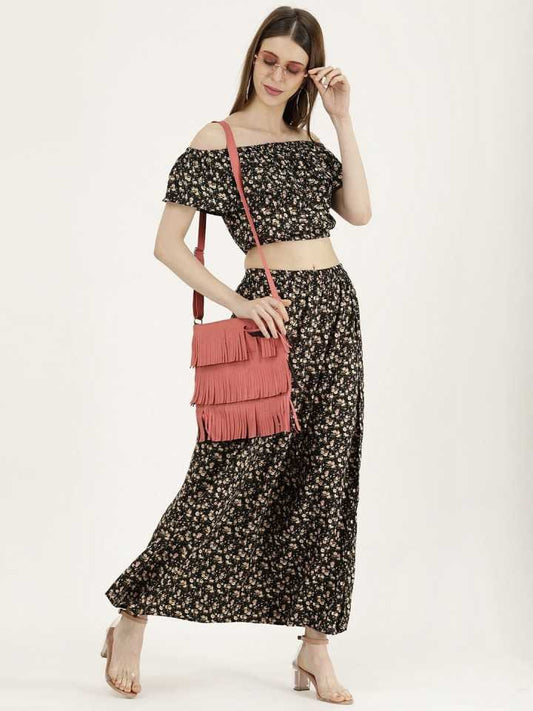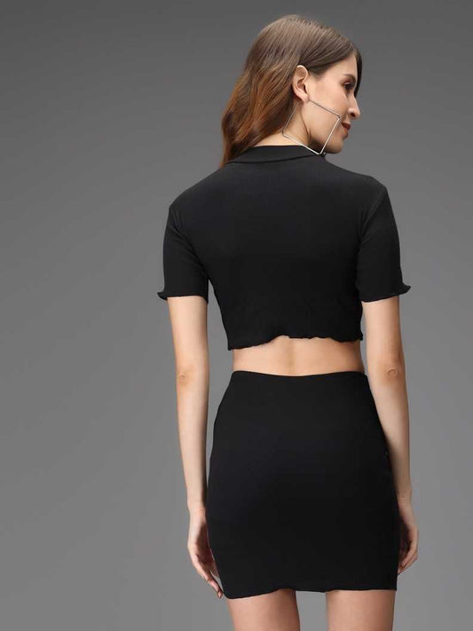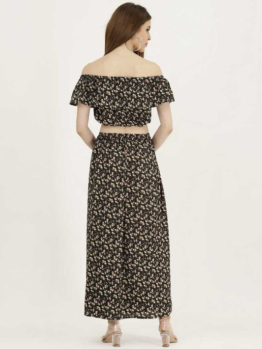 Stacked Flame Exclusive Black Strappy Crop Top and High-Slit Skirt Set