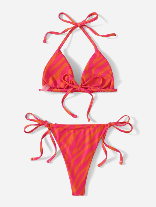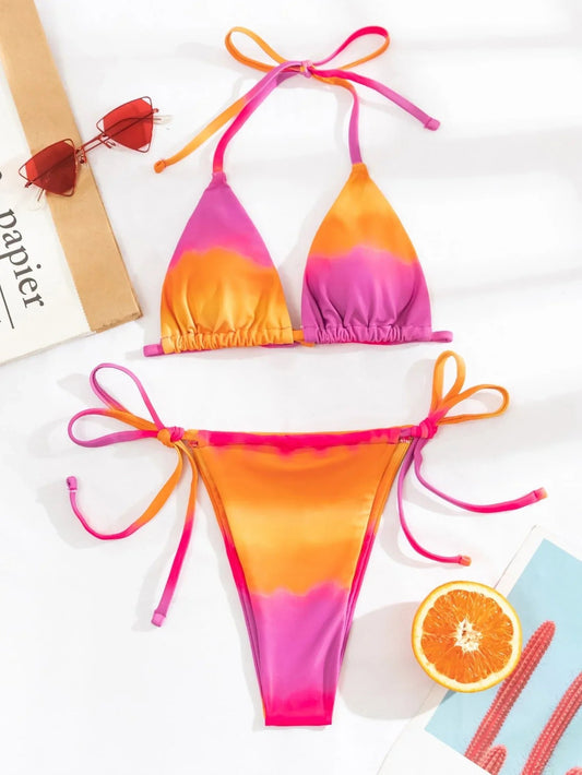 ELTIRE Multicolor Two Piece Bandeau Self Tie Bikini Swimsuit
