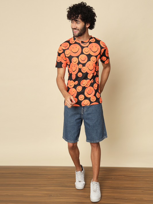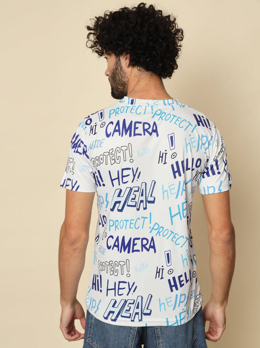 Men Typography Round Neck Polyester Multicolor T-Shirt