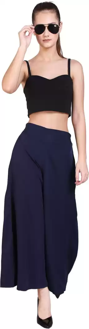 Stacked Flame Flared Women BLUE Crepe Trousers