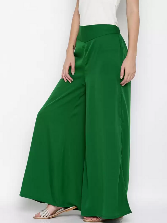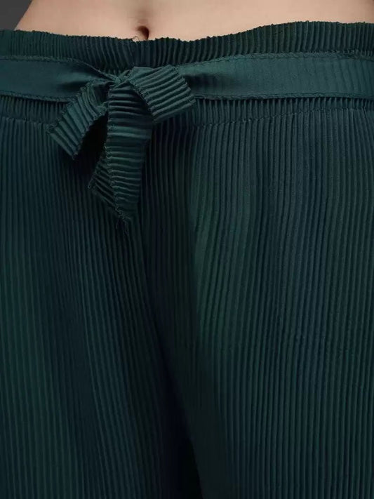 TANDUL Flared Women Dark Green Poly Crepe Trousers