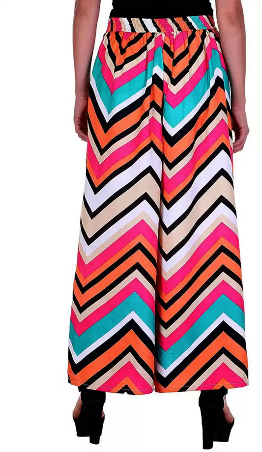 Stacked Flame Flared Women Multicolor Poly Crepe Trousers