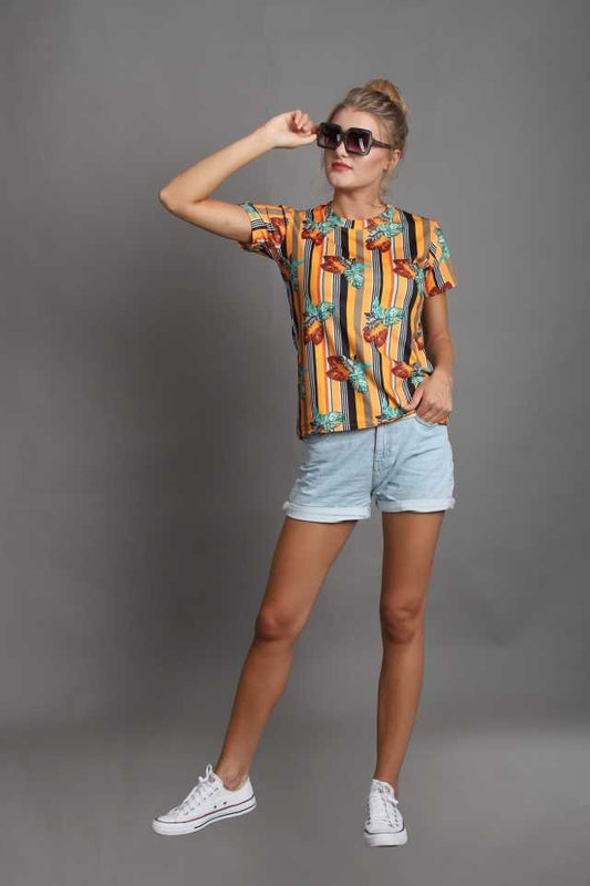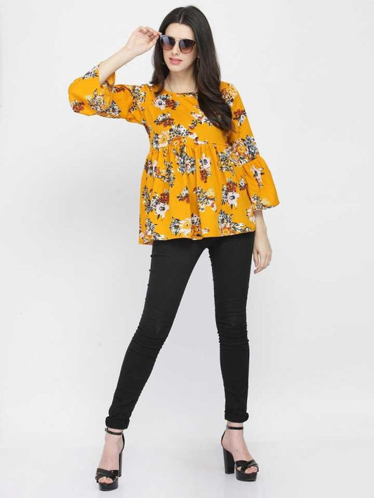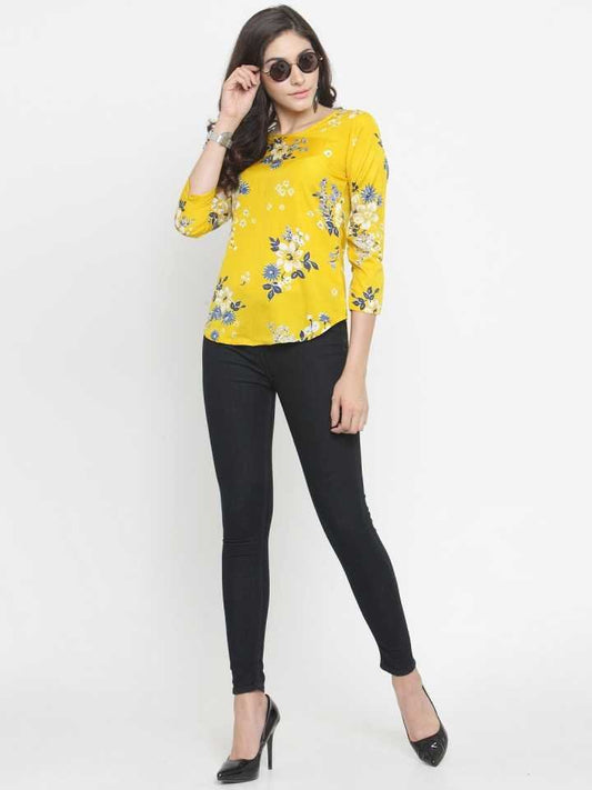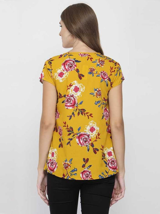 Casual Regular Sleeves Floral Print Women Yellow Top