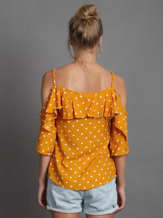 Casual Cold Shoulder Sleeves Printed Women Multicolor Top