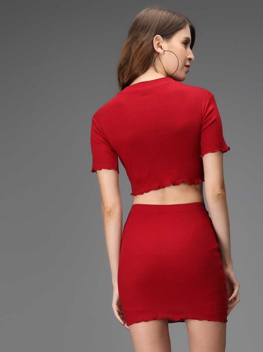 Stacked Flame Vibrant Red Swirl Print Crop Top and Shorts Set