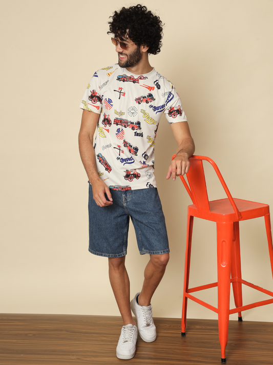 TANDUL Men Printed Round Neck Multicolor T-Shirt