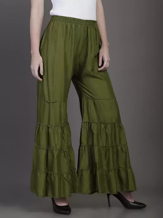 Stacked Flame Regular Fit Women Green Rayon Trousers