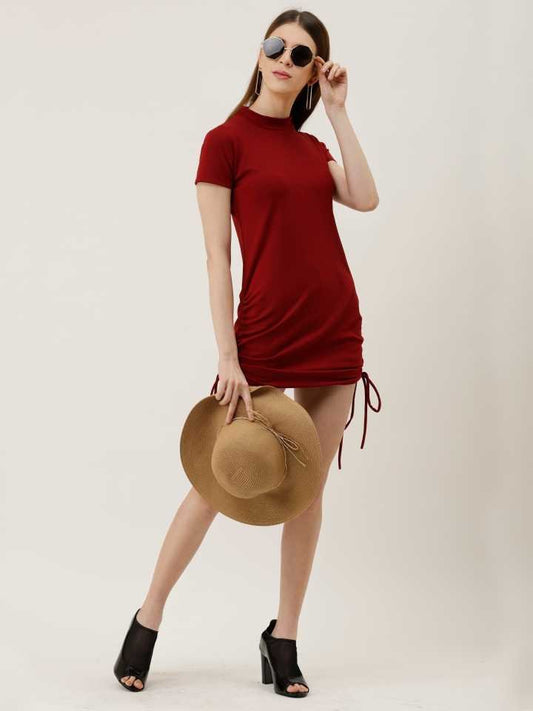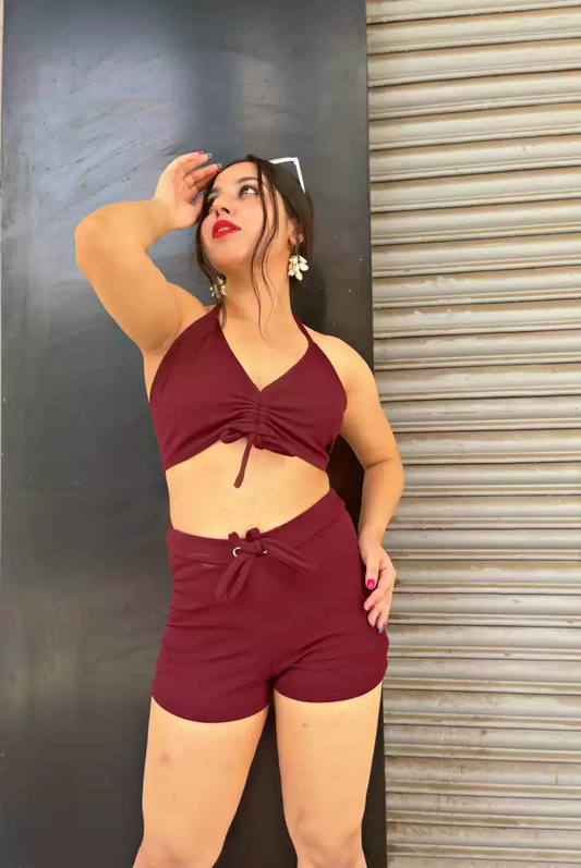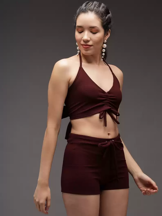 Stacked Flame Solid Women Maroon High Waist Shorts