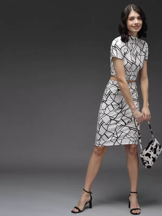 Stacked Flame Women Geometric Print Crop Top and Skirt Set Two Piece Dress