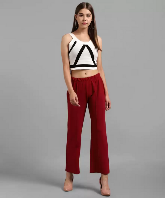 Stacked Flame Regular Fit Women Maroon Lycra Blend Trousers