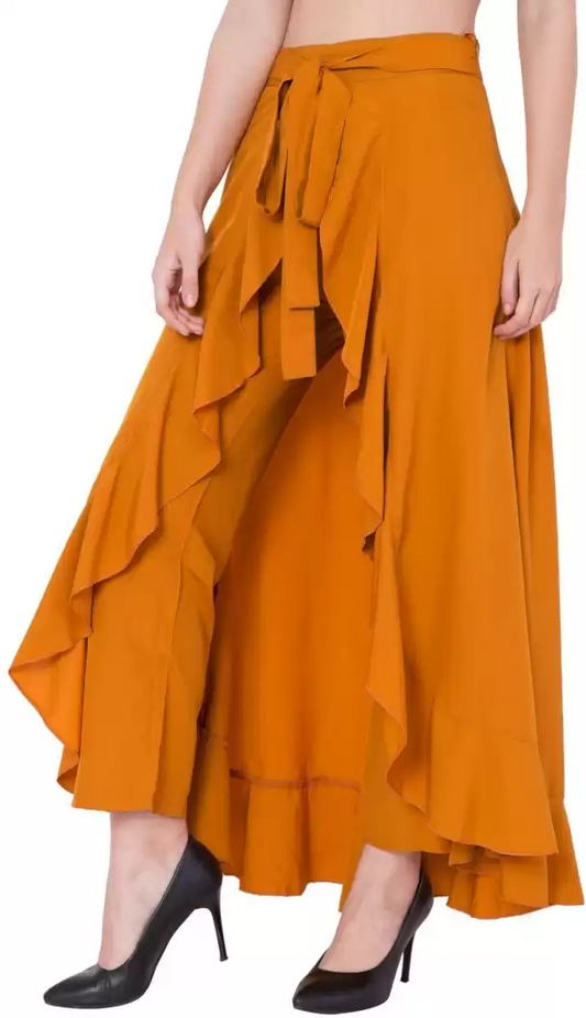 TANDUL Flared Women Yellow Poly Crepe Trousers