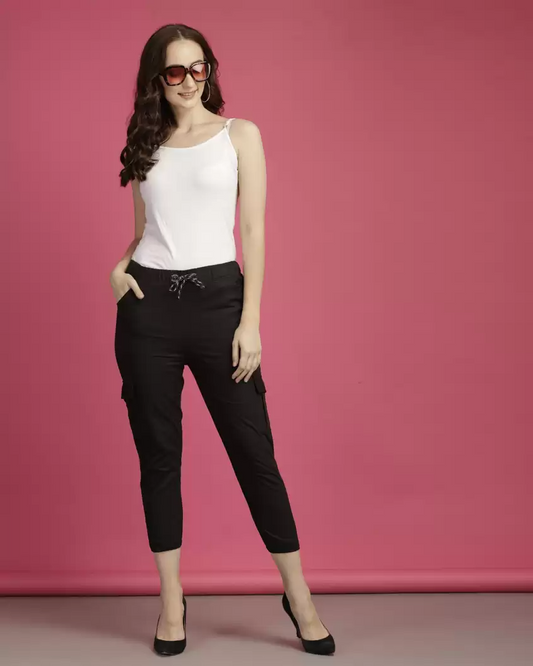 Stacked Flame Regular Fit Women Black Pure Cotton Trousers