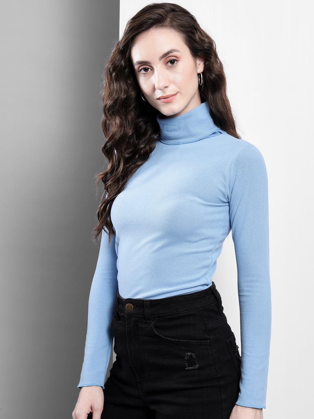 TANDUL Solid Collared Neck Casual Women Blue Sweater