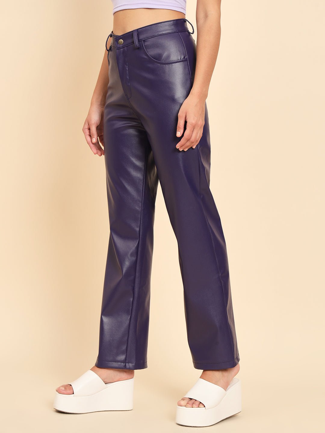 Stacked Flame Women Regular Fit Blue Faux Leather Trousers