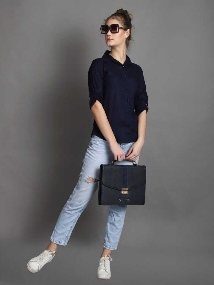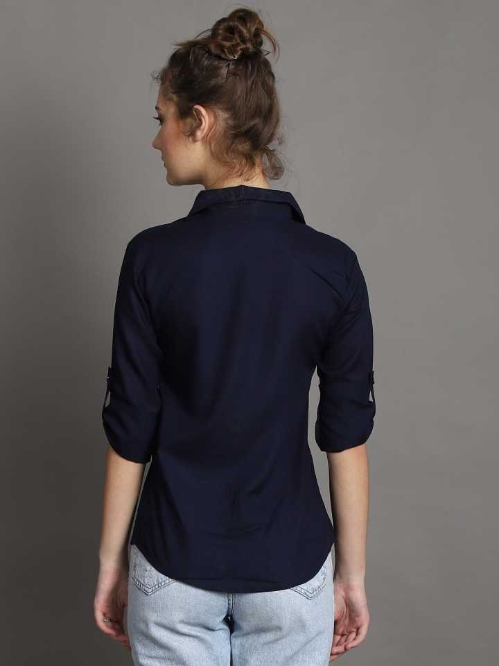 Explore the modern and western look by wearing this wonderful SHIRT.This SHIRT has been made with Rayon fabric which is undoubtedly skin friendly fabric, allows you to visit any party in the comfortable condition or for casual wear . This has been stitched with standard modern style to promote your look to the most stylish lady in the party or casual visit.This has Roll-up Sleeve with Collar Neck.The color of the product is Blue.BUY NOW!!!.HAPPY SHOPPING!