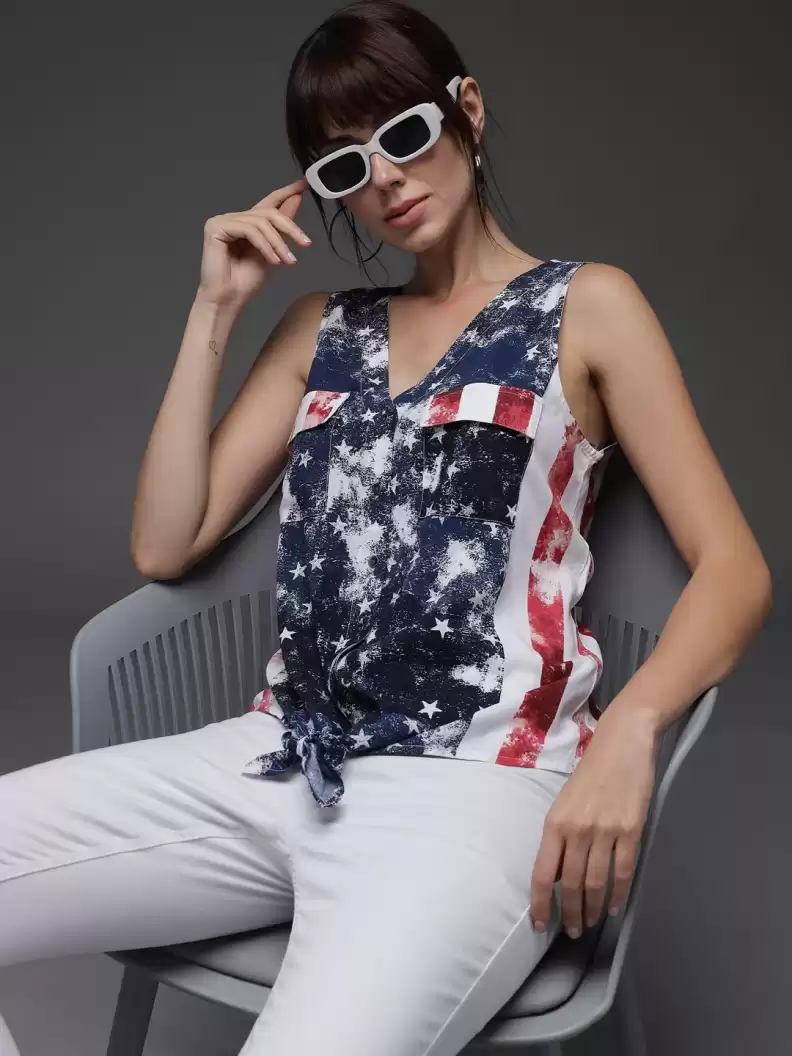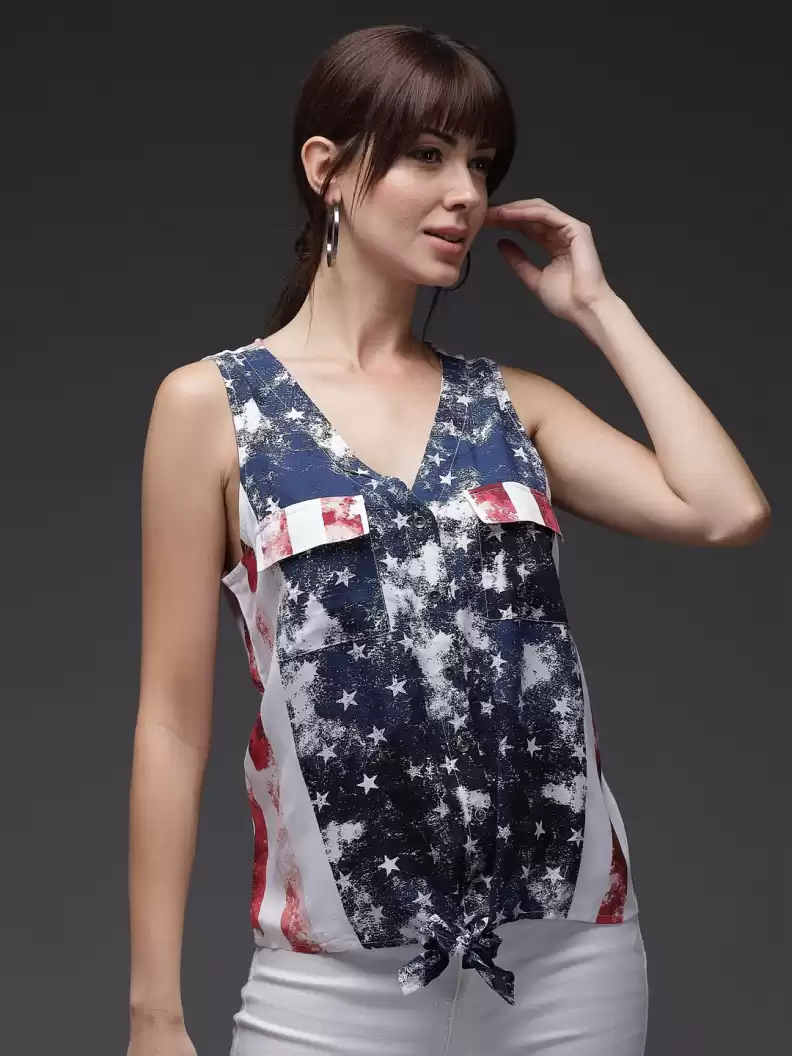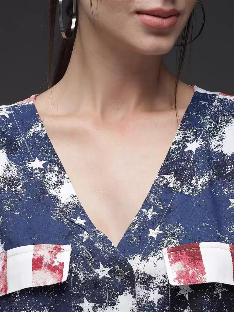 Stacked Flame Women Regular Fit Printed Button Down Collar Formal Shirt