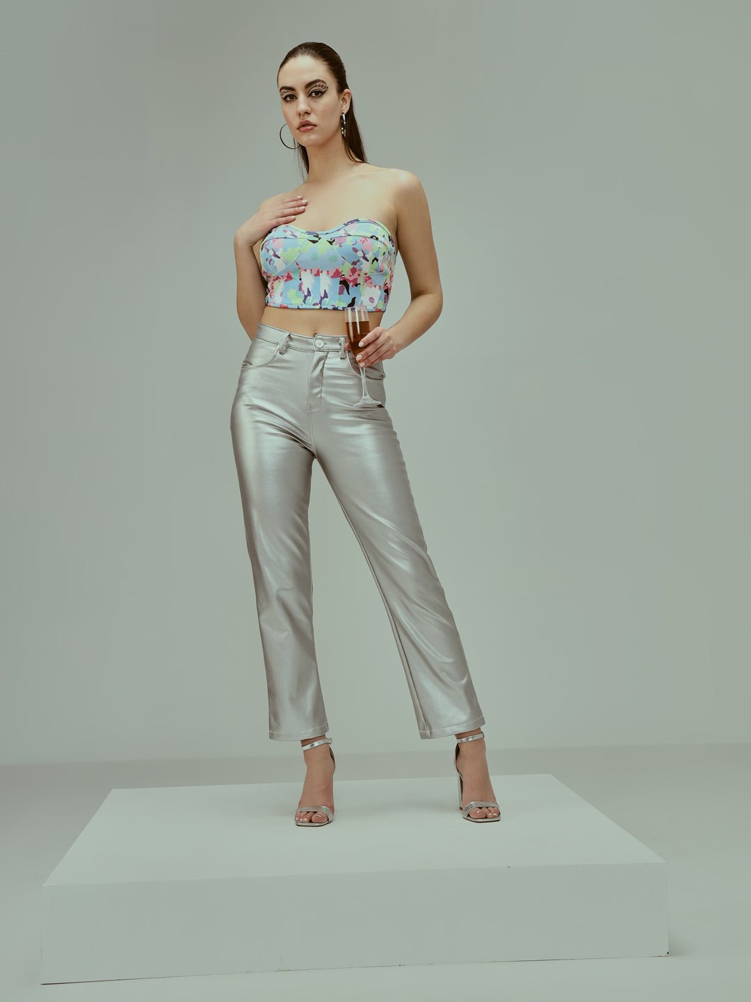 Stacked Flame Women Regular Fit Silver Faux Leather Trousers
