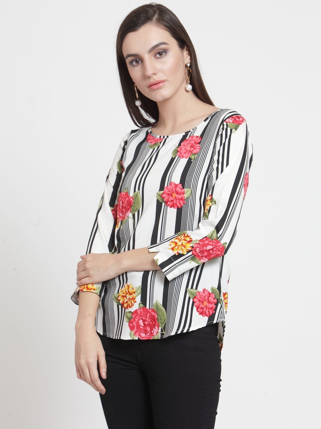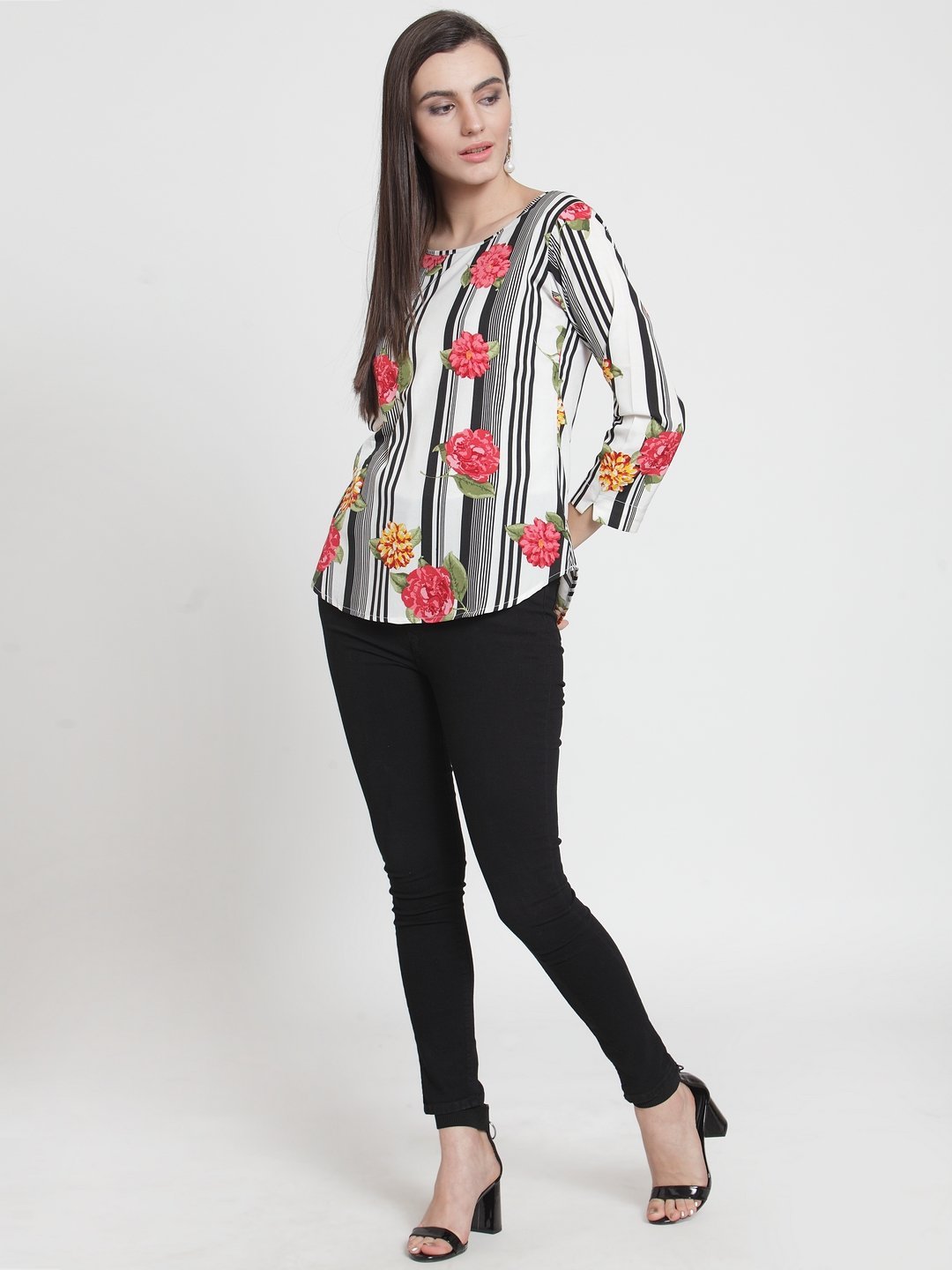 ZARVEY Casual 3/4 Sleeve Printed Women Multicolor Top