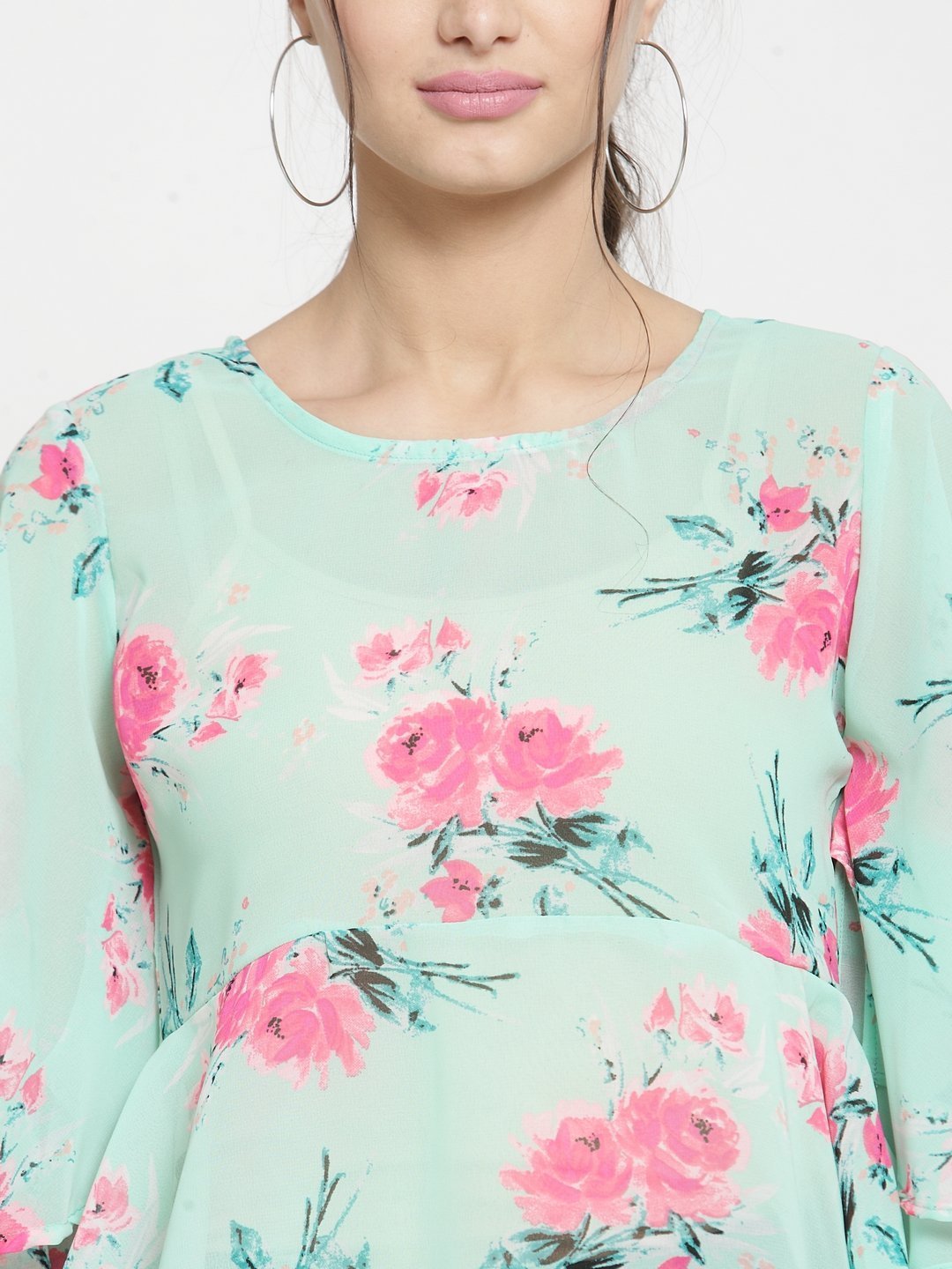 ZARVEY Casual Flared Sleeve Printed Women Multicolor Top